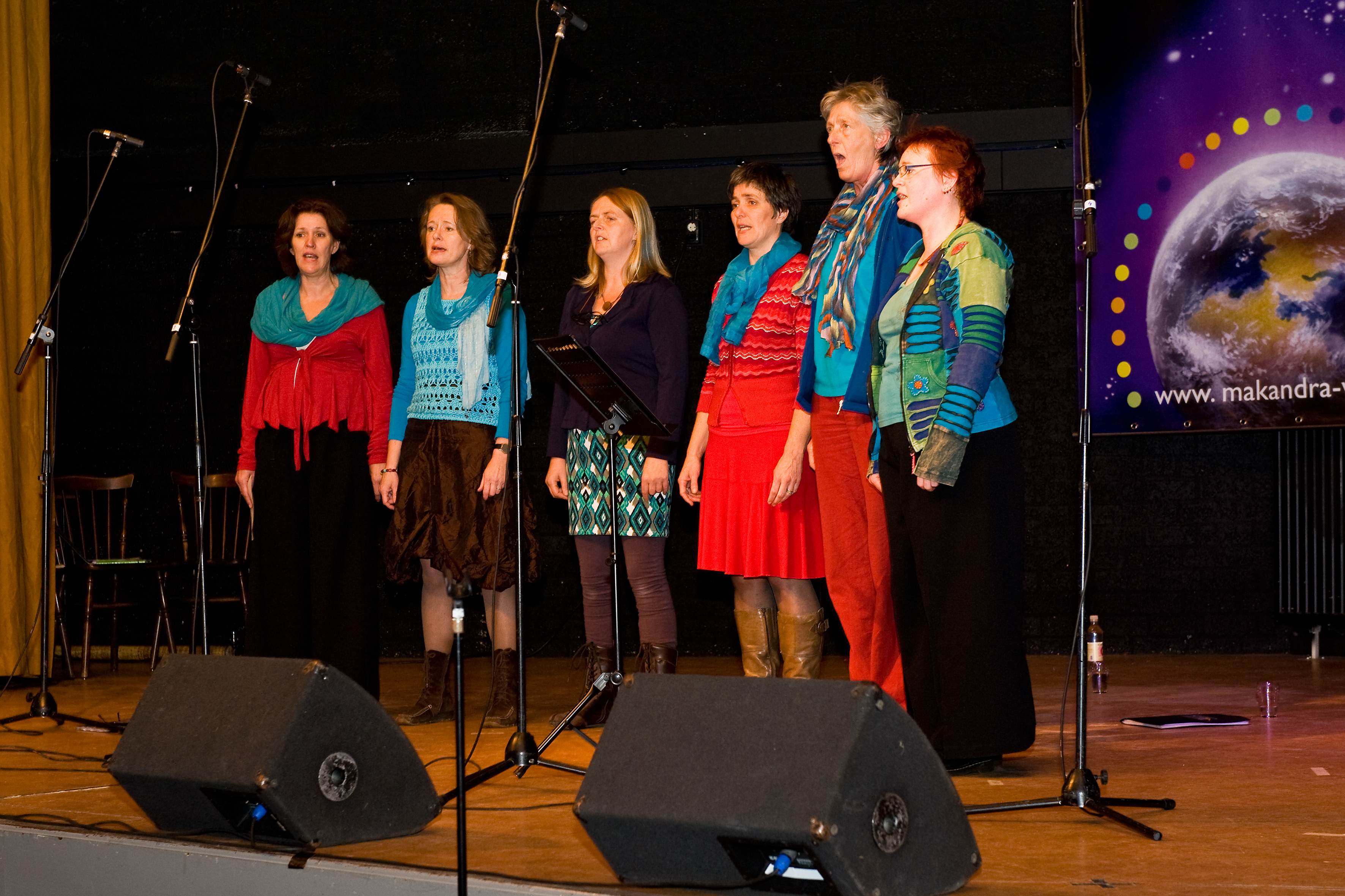 Zoals gebruikelijk start het concert met het vrolijke lied Makandra, Surinaams voor ‘samen’. In Tibie Paiom toont het koor dat ze ook klein en ingetogen kan zingen, waarna Old Toy Trains een nostalgische Kerstsfeer oproept. Nonjana past bij de kapel: in dit Afrikaanse begrafenislied wordt leven en dood bezongen. Later op de middag vertellen de oermoeders van Lapland in Gula Gula het verhaal van de uitputting van hun jachtgebieden, begeleid door sombere trommelslagen. En zo gaat de muzikale wereldreis verder, soms vrolijk, soms stemmig. Makandra bezingt leven en dood, in de menselijke maat: heimwee, vreugde, strijd en geluk. Makandra toont zich op zijn eigen jubileummiddag op zijn best. Ook als de koorleden samen met de Baddies Cockles and Mussels zingen, zijn ze in hun element: stem geven aan dat wat gezongen wil worden: de menselijke emotie. Het publiek waardeert de kwinkslagen van de Baddies, de zes zangers met elk hun eigen stemgeluid, een breed repertoire en inlevingsvermogen. Na de pauze was het genieten met de 3-mans formatie Taaftere. Nostalgisch, kritisch en met humor brachten zij hun nummers ten gehore.